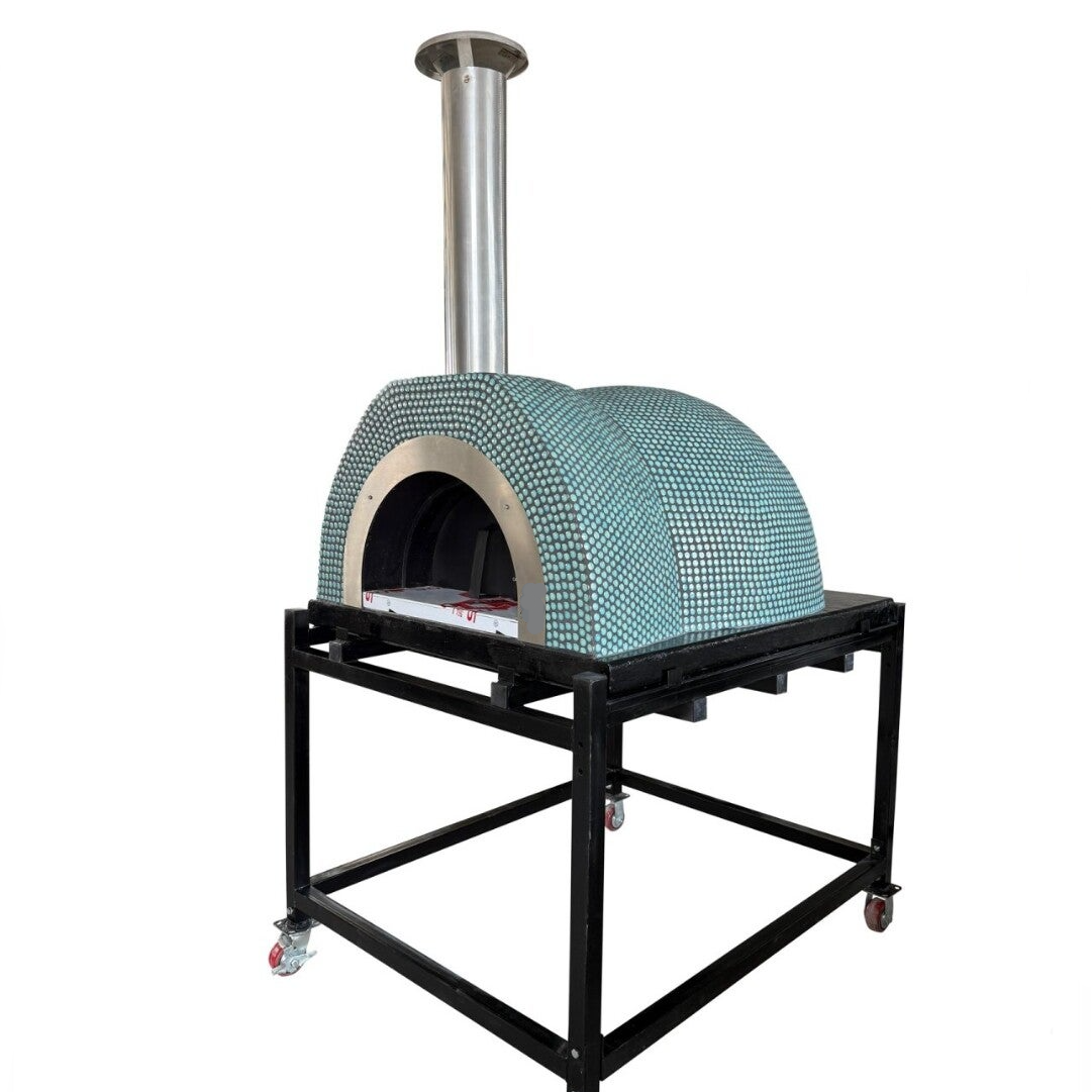 The KC Vesuvius 80 Dome pizza oven is meticulously handcrafted using premium refractory materials, ensuring exceptional heat retention and allowing you to cook far more than just pizza. This oven is built on a reinforced concrete slab. Ready to use, it can be placed directly on your bench top, incorporated into your bench top, or you can choose to build a custom base. Additionally, the oven is shipped with a stillage that can serve as a stand, and if you need portability, we provide optional wheels at no extra cost. The stillage/stand can also be enclosed to create a fully functional unit.